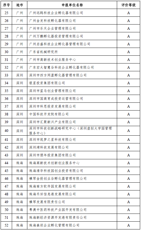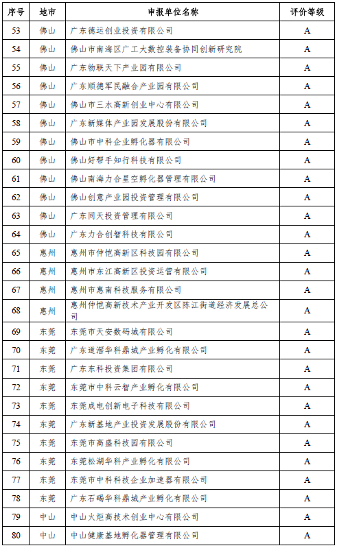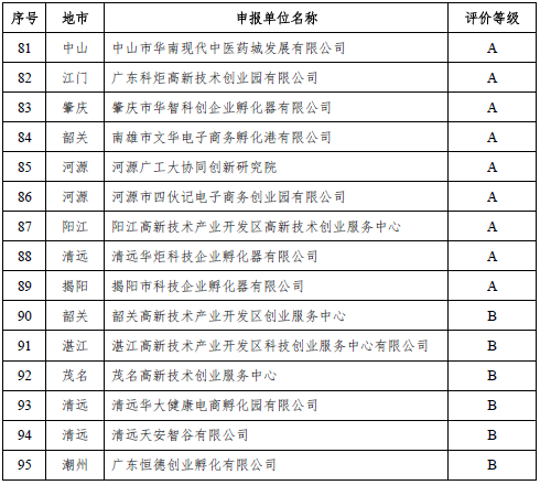 現將全省被評為優秀(A級)的孵化器、眾創空間,粵東西北地區被評為良好(B級)的孵化器、眾創空間名單予以公布。