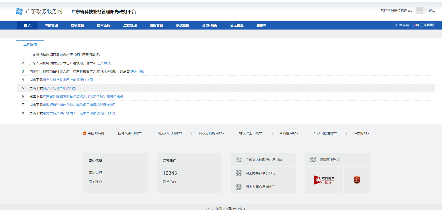 打開廣東省科技業務管理陽光政務平臺網站:http://pro.gdstc.gov.cn/egrantweb/