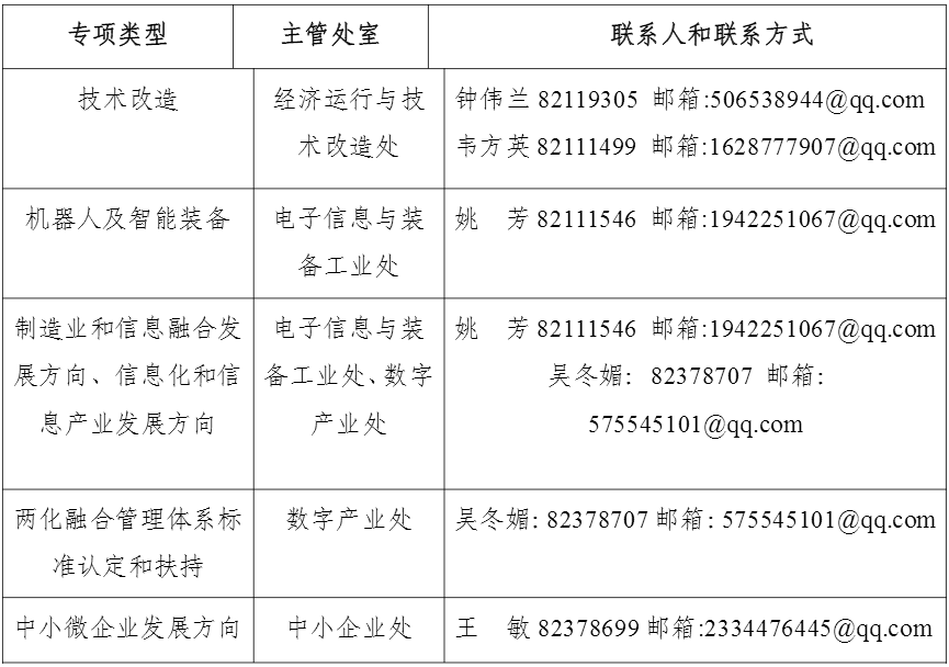 因政策兌現(xiàn)受理期,電話咨詢業(yè)務(wù)量大,多存在占線、無法接聽、或其他不能及時(shí)接聽的情況,請(qǐng)各申請(qǐng)企業(yè)認(rèn)真研究通知、辦事指南、先進(jìn)制造業(yè)發(fā)展辦法實(shí)施細(xì)則、現(xiàn)代服務(wù)業(yè)發(fā)展辦法實(shí)施細(xì)則(附件)的相關(guān)內(nèi)容,確有疑問的請(qǐng)根據(jù)項(xiàng)目專項(xiàng)類型咨詢對(duì)應(yīng)聯(lián)系人,并請(qǐng)盡量通過郵件咨詢。