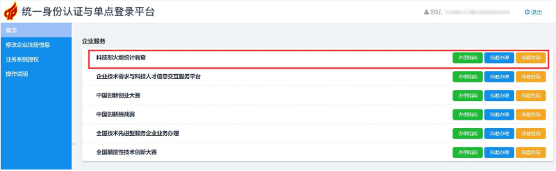 第三步:找到“科技部火炬統計調查”,點擊“我要辦理”